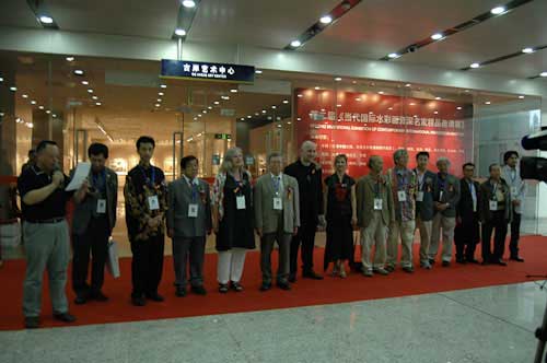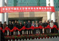 2007 First Exhibition Opening Ceremony For the origin of this exhibition check his essay “A Survey of Watermedia Painting in the Past 100 Years” on his website. The opening is scheduled forFriday, May 28 at the exhibition hall of the magnificent ultramodern new Nanjing Library.