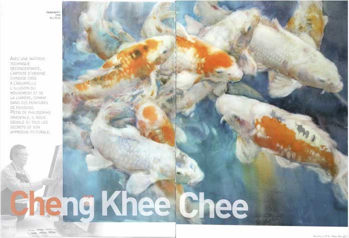 Cheng-Khee was featured in L'Art de L'Aquarelle, a French Watercolor Magazine The Art of Watercolor issue No. 8, March-May, 2011, Page 18-23 and Page 84-85. Six pages of the article deal with his saturated wet process for capturing the movement of koi and other fish. The other two pages deal with the method of turning failed paintings into successful ones.